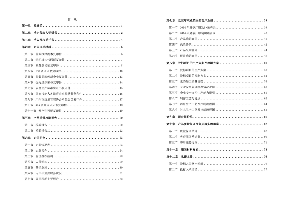 服装制作投标文件